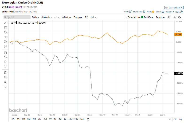 However, this cruise titan is currently trading 26.5% below its 52-week high of $29.29, reached on Jan. 31. Shares of Norwegian Cruise Line have declined 15.1% over the past three months, considerably underperforming the Dow Jones Industrial Average’s ($DOWI) 4.1% rise during the same time frame.