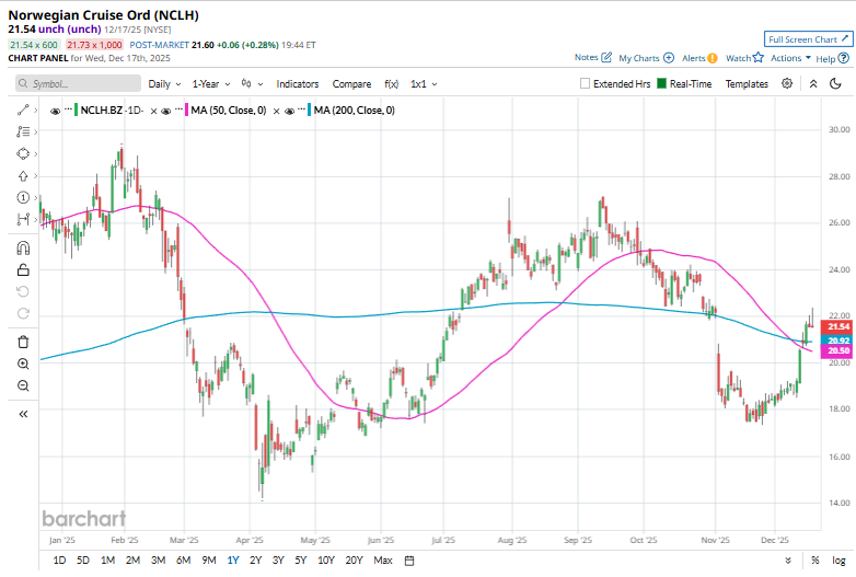 NCLH has recently climbed above its 50-day and 200-day moving averages, indicating an uptrend.