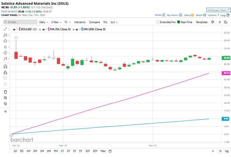 From a technical standpoint, the trend has remained firmly constructive, as Solstice has traded above both its 50-day and 200-day moving averages since its debut.