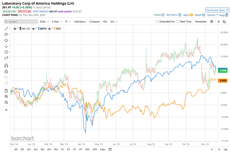 Shares of the medical laboratory operator have slightly underperformed the broader market. Over the past 52 weeks, LH stock has rallied by 9.9%, while the broader S&P 500 Index ($SPX) has gained 10.5%. However, the stock rose 14% on a YTD basis, compared to SPX’s 11.2% surge.