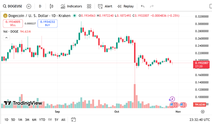 In the meantime, Dogecoin, which has a market valuation of $158.67 billion, is now trading at $0.1934 following a notable decline of roughly 1.03% over the past day.