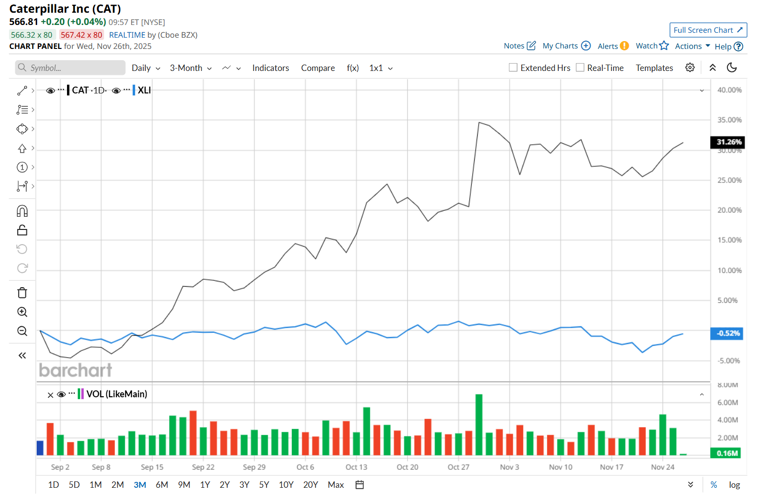 Companies valued at $200 billion or more are typically classified as “mega-cap stocks,” and CAT fits the label perfectly, with its market cap exceeding this threshold, underscoring its size, influence, and dominance within the farm & heavy construction machinery industry. With a strong global dealer network, a resilient end-market presence, and continued investment in technology and sustainability, Caterpillar remains a cornerstone of the industry.