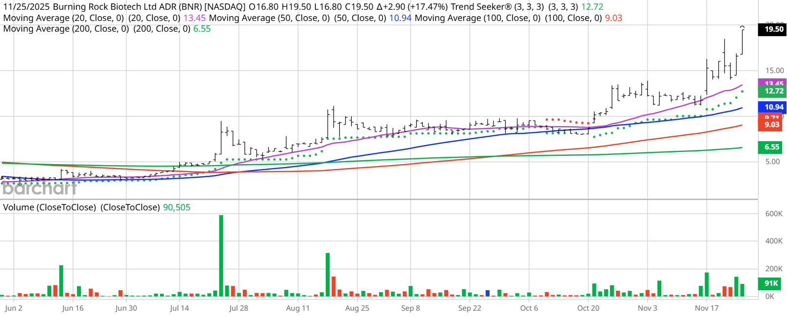 Barchart Technical Indicators for Burning Rock Biotech