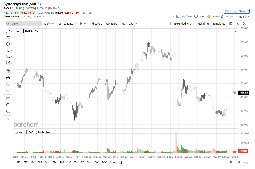 In the five days that ended on Dec. 10, Synopsys shares rose 2.01%. However, they had dropped 1.96% year-to-date.