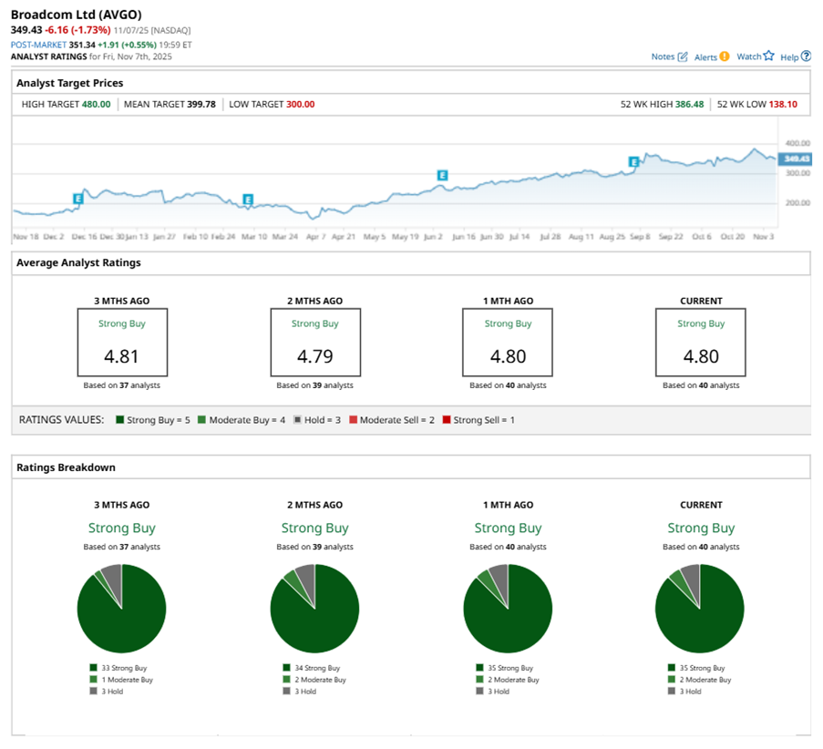 The mean price target of $399.78 represents a 14.4% premium to AVGO’s current price levels. The Street-high price target of $480 suggests an ambitious upside potential of 37.4%.