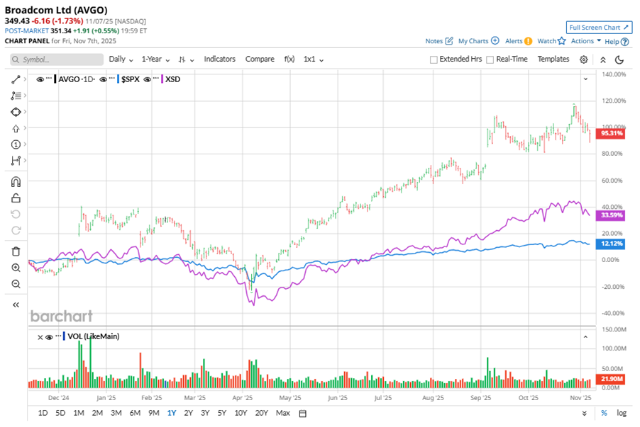 Shares of this semiconductor giant have considerably outperformed the broader market over the past year. AVGO has gained 90.1% over this time frame, while the broader S&P 500 Index ($SPX) has rallied nearly 12.7%. In 2025, AVGO stock is up 50.7%, surpassing the SPX’s 14.4% rise on a YTD basis.
