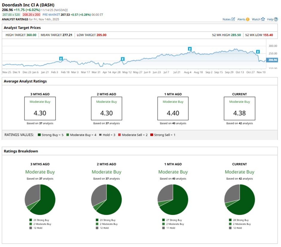 While the firm did lower its price target from $300 to $275, it maintained its “Buy” rating, highlighting stronger order trends and continued growth in Gross Order Value (GOV). Even with the recent volatility in shares, Needham believes DoorDash is on track to double its post-pandemic GOV within four years, a clear sign that demand remains strong and the company is executing well.
