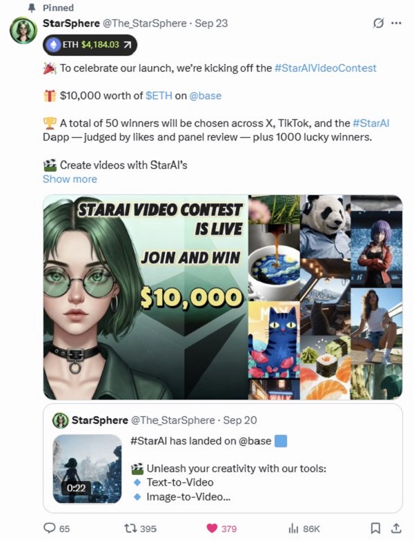 To celebrate the launch, StarSphere has kicked off a Video Generation Contest with a prize pool of $10,000: