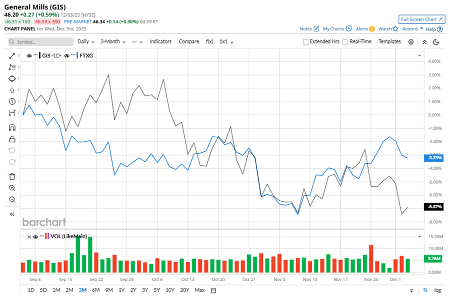 In the longer term, shares of GIS fell 14.9% on a six-month basis and dipped 30.3% over the past 52 weeks, underperforming FTXG’s six-month dip of 5% and 12.3% losses over the last year.