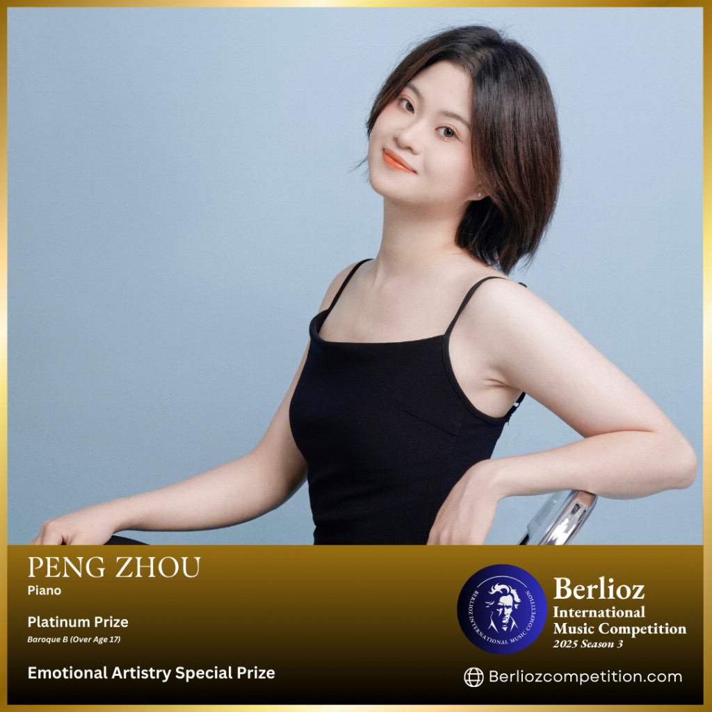 Several international music competitions have recently recognized her talent. In 2025, Zhou won the Emotional Artistry Special Prize and the Platinum Prize in the Baroque B Category at the Berlioz International Music Competition. She also won the Grand Prize