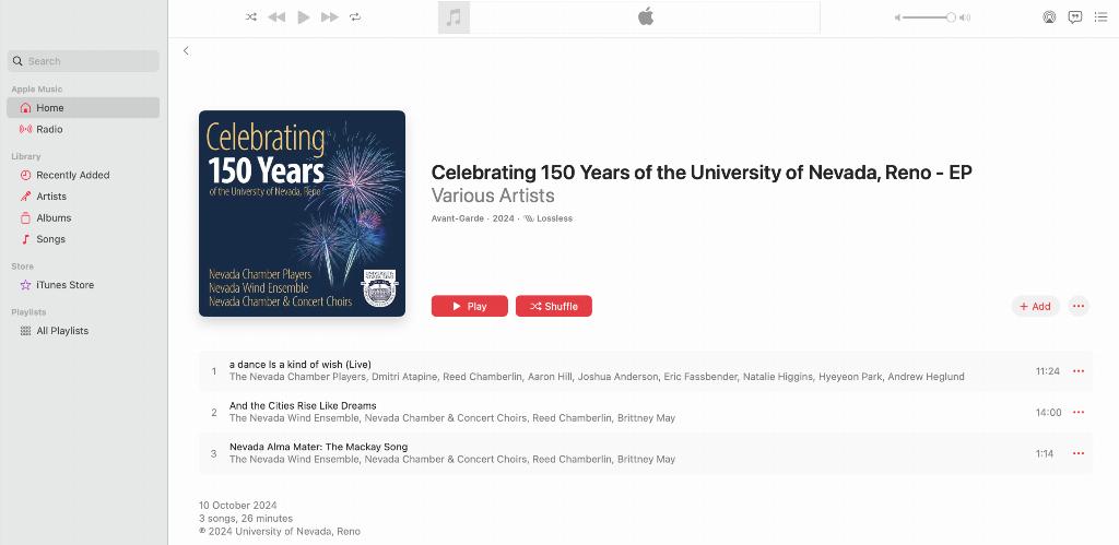 Zhou helped make the university's landmark album Celebrating 150 Years, which came out on Apple Music and other major streaming services in October 2024. She played the piano in the world premiere of "And the Cities Rise Like Dreams," a piece commissioned by American composer Steve Danyew. The Nevada Wind Ensemble and the university choir recorded it. Local news called the record a "milestone project," pointing out how it shows off collaborative art and fresh ideas at the University of Nevada, Reno.