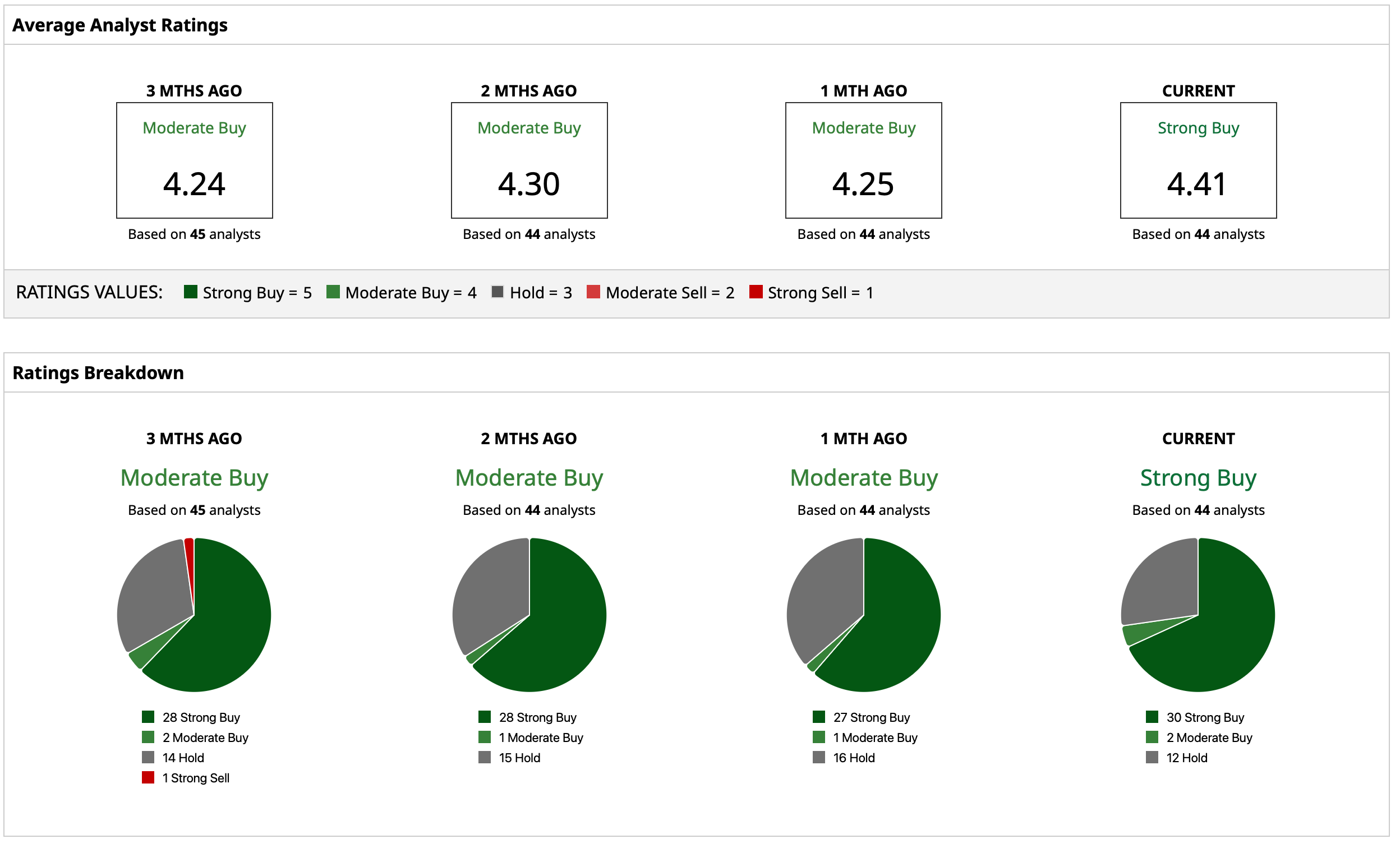 Overall, analysts have attributed a consensus rating of “Strong Buy” for AMD stock with a mean target price of $258.84, which implies limited upside potential from current levels. However, the high target price of $350 indicates an upside potential of 36.5% from current levels. Out of 44 analysts covering the stock, 30 have a “Strong Buy” rating, two have a “Moderate Buy” rating, and 12 have a “Hold” rating.