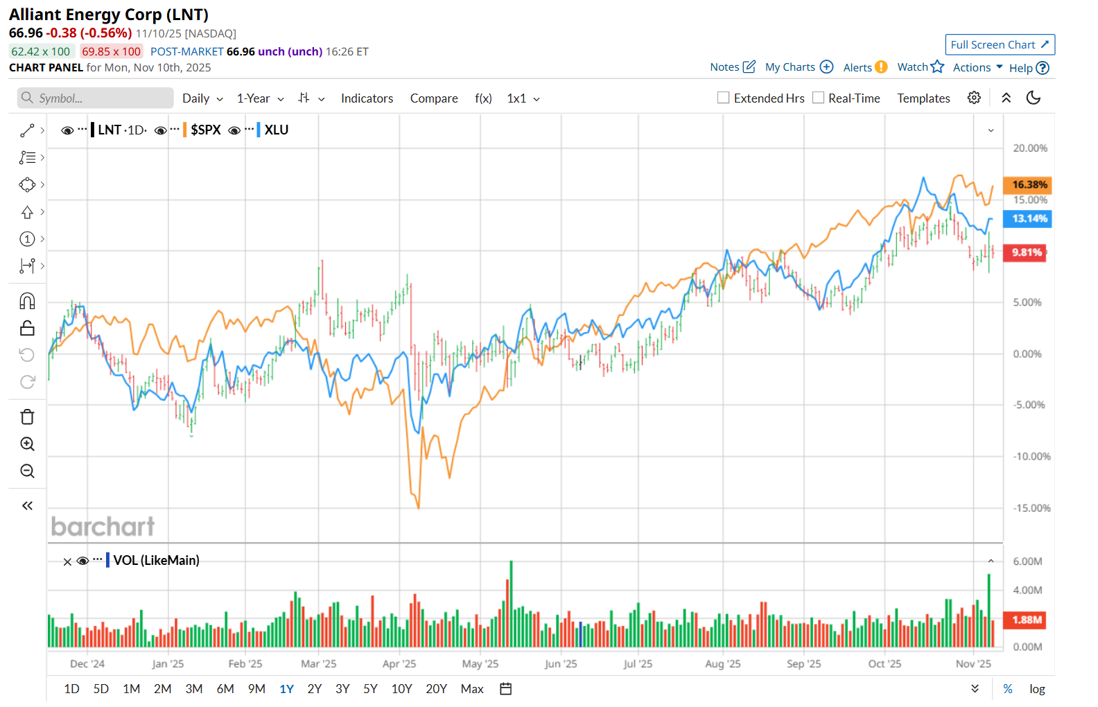 Shares of this utility company have outpaced the broader market over the past 52 weeks. LNT has surged 16% over this time frame, while the broader S&P 500 Index ($SPX) has gained 14%. However, on a YTD basis, the stock is up 13.2%, lagging behind SPX’s 16.2% return.