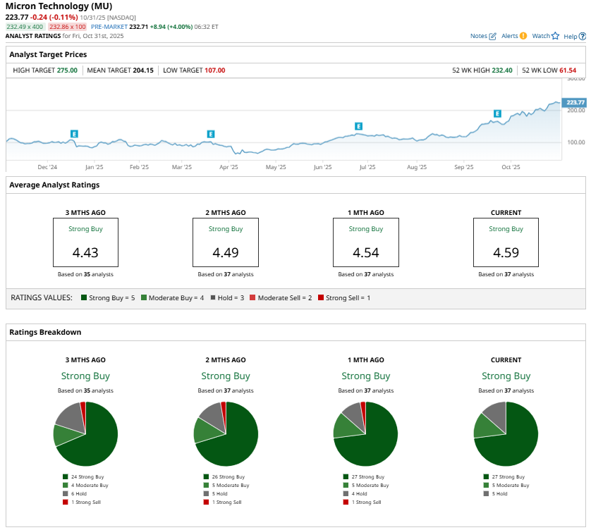Micron, by contrast, appears to be far more reasonably priced. MU stock trades at just 14.5 times forward earnings, a level that leaves room for further growth. Analysts forecast Micron’s earnings per share to jump by an impressive 101.5% in fiscal 2026, making MU undervalued.