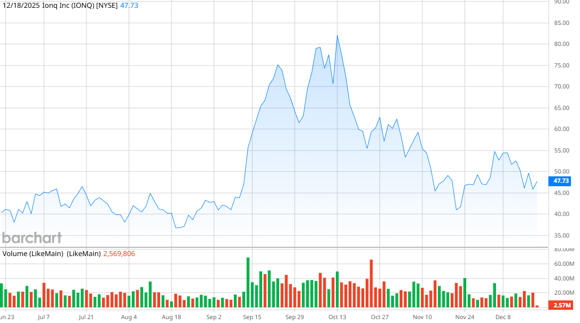 Shares this year are up nearly 13%, which not only trails the S&P 500’s ($SPX) gain of 16% but also its competitors. Rigetti Computing (RGTI) is up 50% in 2025, and D-Wave Quantum (QBTS) is up a whopping 201%. That’s not necessarily a red flag, though—IonQ has a market cap roughly the same size as Rigetti and D-Wave combined. The latter two companies appear to be catching up to IonQ, which was an early leader in the space.