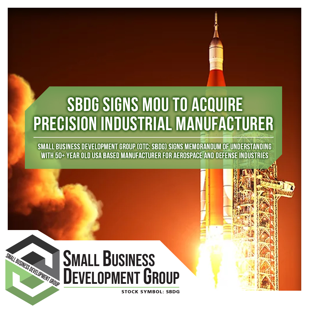 Lady Lake, FL - (NewMediaWire) - June 16, 2021 - Small Business Development Group, Inc. (OTC:SBDG) has executed a Memorandum of Understanding (MOU) for the acquisition of a precision industrial manufacturing company. The closing of the acquisition is subject to satisfactory completion of due diligence. As a publicly traded holding company on OTC Markets, SBDG’s plan is to build its portfolio with industry centric verticals. This is the first step in the development of a vertical of manufacturing and service-based holdings for SBDG.