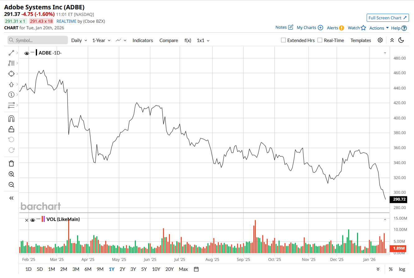 Its mean price target of $436.21 represents a potential upside of 50% from its current price of $291, implying significant recovery potential as analysts bet on Adobe's AI adaptations driving future earnings growth.