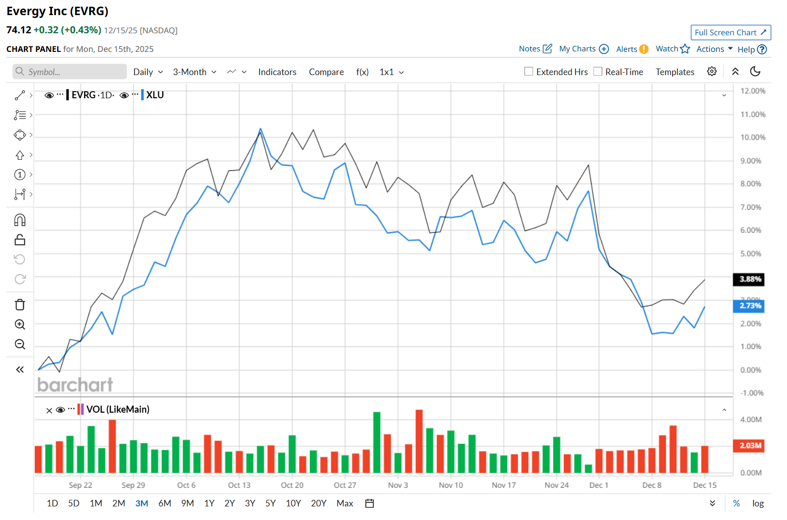 This utility company is currently trading 6.6% below its 52-week high of $79.32, reached on Oct. 16. Shares of Evergy have gained 2.7% over the past three months, outperforming the State Street Utilities Select Sector SPDR ETF’s (XLUmarginal rise during the same time frame.
