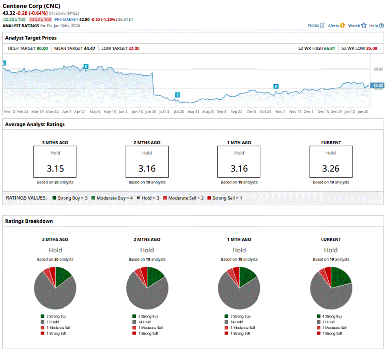 Analysts started the year with a more constructive tone on Centene. For instance, on Jan. 9, Mizuho lifted its price target to $47 from $40 while keeping a “Neutral” rating, as part of its broader fourth-quarter 2025 outlook for healthcare facilities and managed care names. Just two days earlier, Wells Fargo also boosted its price target for CNC, raising it to $43 from $35, while maintaining an “Equal Weight” stance.