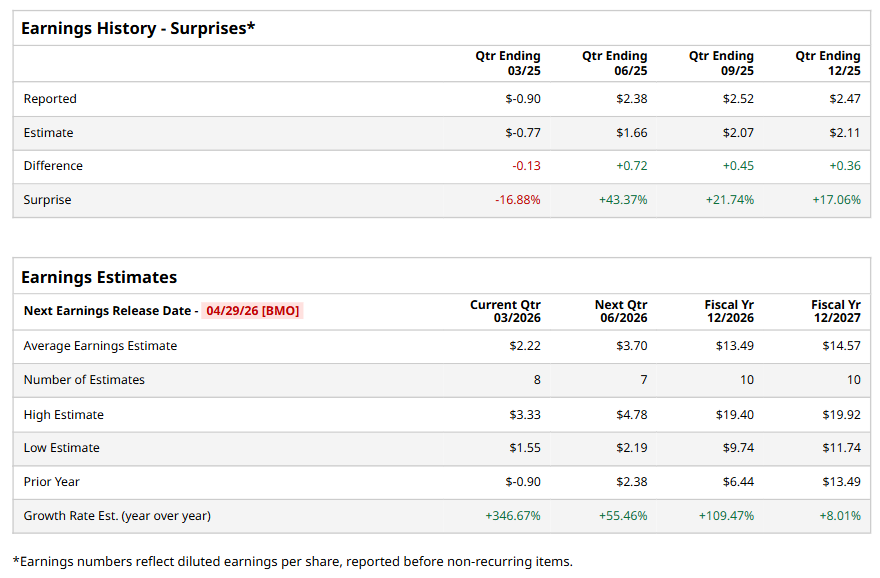Phillips 66 (PSX), headquartered in Houston, Texas, operates as an energy manufacturing and logistics company. With a market cap of $73 billion, the company’s operations include oil refining, marketing, and transportation along with chemical manufacturing and power generation. The leading integrated downstream energy provider is expected to announce its fiscal first-quarter earnings for 2026 before the market opens on Wednesday, Apr. 29.