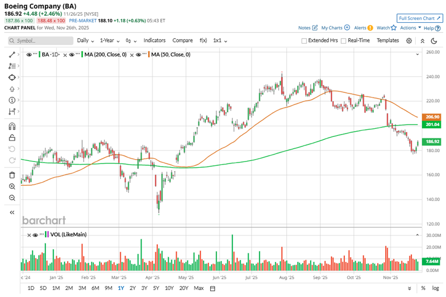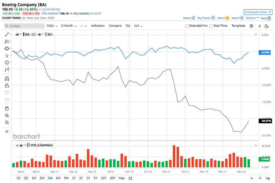 Despite its notable strength, BA slipped 23% from its 52-week high of $242.69, achieved on Jul. 29. Over the past three months, BA stock declined 20.4%, underperforming the Industrial Select Sector SPDR Fund’s (XLImarginal dip during the same time frame.