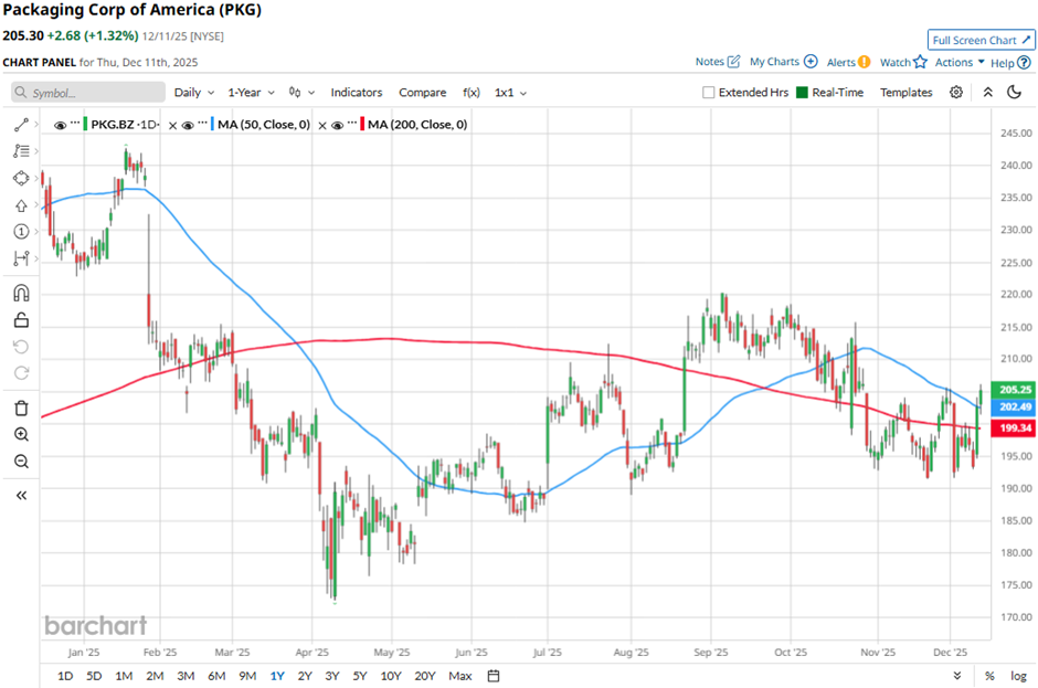 Despite reporting weaker-than-expected Q3 2025 adjusted EPS of $2.73 on Oct. 22, shares of PKG rose 2.2% the next day because revenue of $2.31 billion exceeded forecasts and improved from $2.2 billion a year earlier. Investors responded positively to strong operational performance, including $503.4 million in EBITDA excluding special items and solid Packaging segment operating income of $347.9 million.