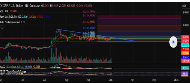 XRP Price today trades around $2.90 to $3.00 after testing the $3.00 psychological level. Ripple News around a possible SEC spot ETF decision keeps the upside case alive. Technicals show XRP price trying to hold $2.95 support; a failure could invite a retrace toward $2.40.