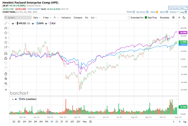 Shares of this global technology leader have outperformed the broader market over the past year. HPE has gained 20% over this time frame, while the broader S&P 500 Index ($SPX) has rallied nearly 17.4%. However, in 2025, HPE stock is up 14.3% trailing SPX’s 16% rise.