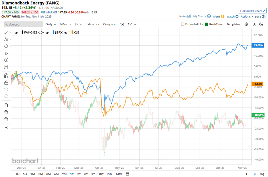 With a market cap of $42.4 billion, Diamondback Energy, Inc. (FANG) is an independent oil and gas company focused on the acquisition, development, and production of unconventional resources in the Permian Basin. The company targets the prolific Spraberry, Wolfcamp, and Bone Spring formations across the Midland and Delaware basins.