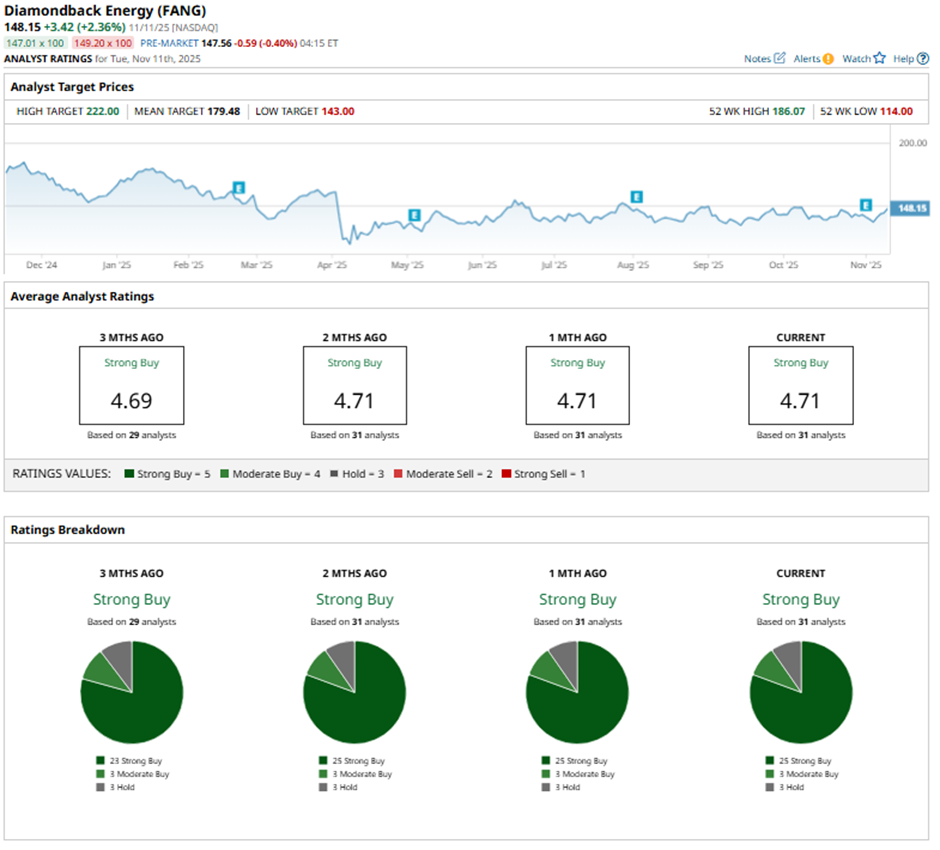 On Nov. 11, UBS raised its price target on Diamondback Energy to $174 and maintained a “Buy” rating.