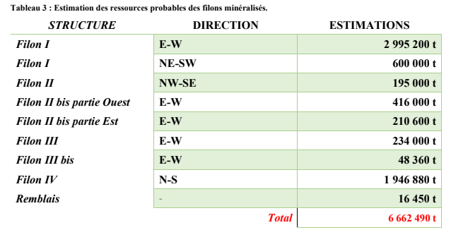 The 2022 technical report was compiled and authored by Mr. Omar Guillou, who led the integration of historical data, field observations, and sampling results into a cohesive evaluation of the concession’s potential. Dr. Abdelaziz El Hadi, a senior structural geologist and academic researcher with over three decades of experience in Moroccan mineral systems, contributed to the geological interpretation and structural modeling. His work focused on vein geometry, structural stacking, and volumetric projections that informed the conceptual tonnage estimate. See Table 1 (Tableau 3) Historical Estimation of Insitu Tonnage by Vein (title modified) from the 2022 report and Table 2: Reconstructed Tons and Grade by Vein.