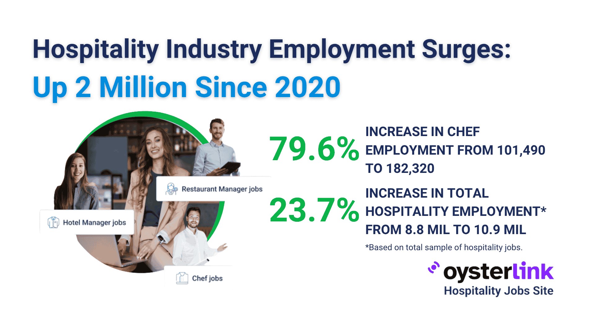 "This isn't just about jobs coming back. It's about net growth," said Milos Eric, Co-Founder and General Manager of OysterLink. "Despite the challenges of the past few years, the hospitality industry now supports over two million more workers than it did in 2020. That shows real resilience and opportunity for anyone considering this field."