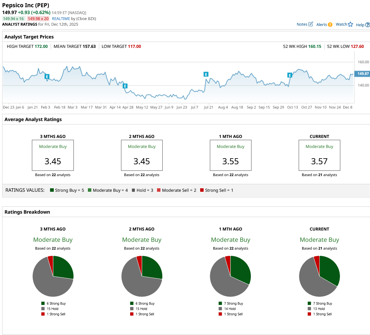 There are currently 21 analysts covering Pepsi, with a “Moderate Buy” rating coming in as the consensus among this group for now.