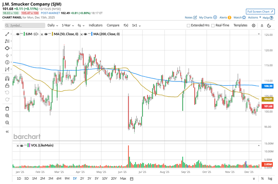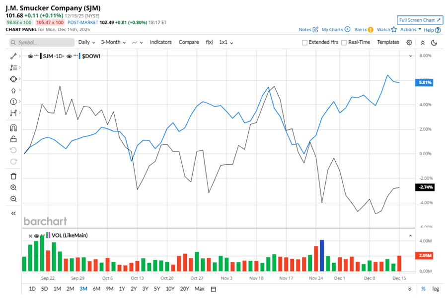 Despite its notable strength, SJM slipped 16.3% from its 52-week high of $121.48, achieved on Mar. 10. Over the past three months, SJM stock declined marginally, underperforming the Dow Jones Industrials Average’s ($DOWI) 5.5% gains during the same time frame.