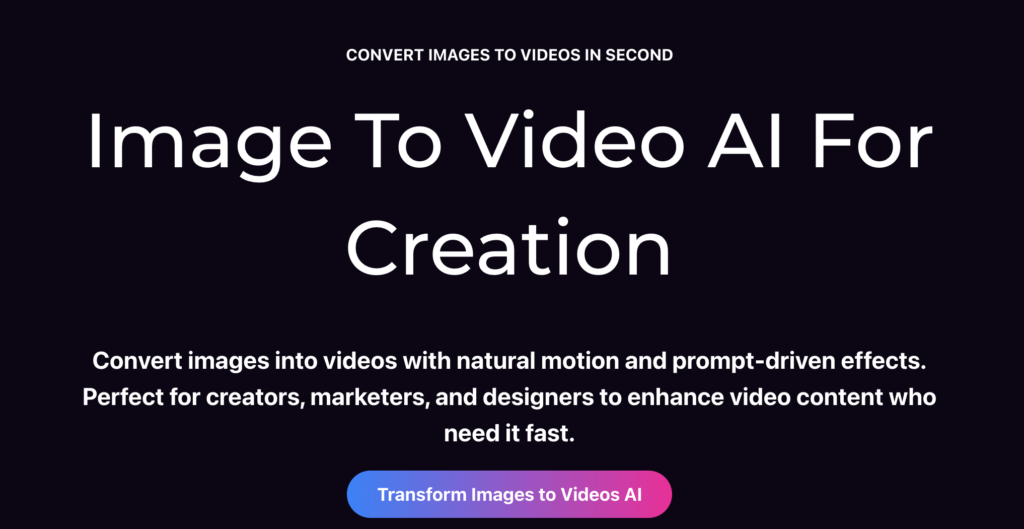 Through AI image to video, videos are made faster, simpler and completely automated. Now, with an AI system, the task that used to require professional editing tools and technical skill can be done directly in your browser.