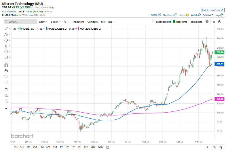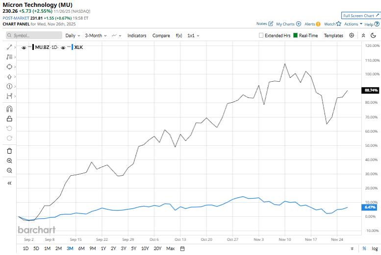 Shares of the Boise, Idaho-based company have declined 11.6% from its 52-week high of $260.58. Over the past three months, Micron Technology's shares have surged 97.7%, outpacing the Technology Select Sector SPDR Fund's (XLK7.9% returnduring the same period.