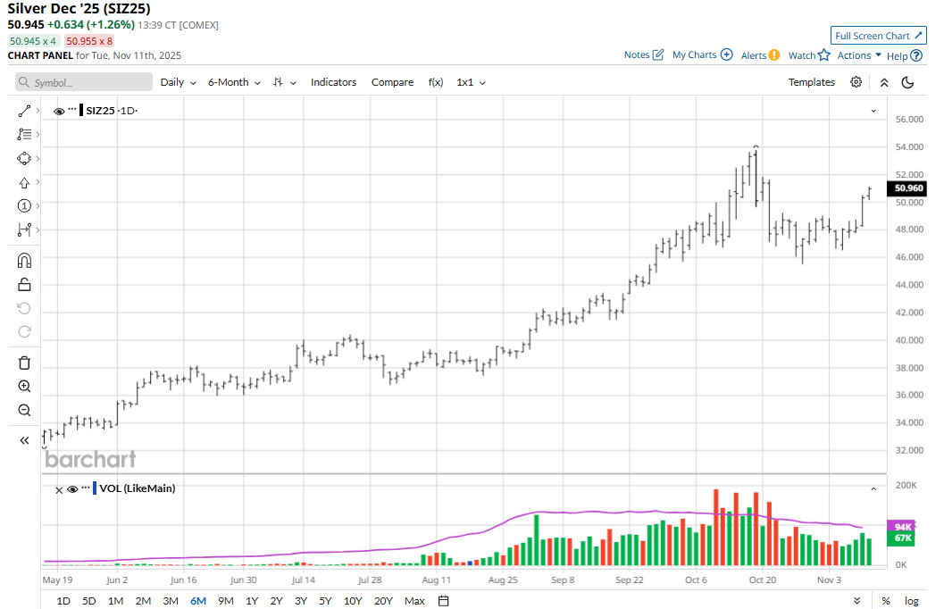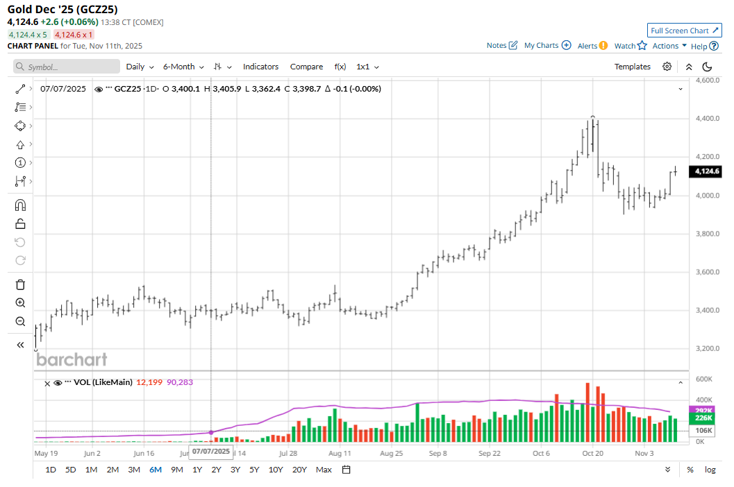 The gold (GCZ25) and silver (SIZ25) markets hit record highs in October and then backed well off those peaks. In late October, the December silver futures contract dropped to a low of $45.51 an ounce, well down from its record high of $53.765 scored on Oct. 17. December gold futures hit a low of $3,901.30 on Oct. 28, after scoring a record high of $4,398.00 on Oct. 20. Near-term technical damage was inflicted on the price downturns, including price uptrends on the daily charts being at least temporarily negated. Those were early clues that gold and silver bulls were exhausted and that near-term market tops could be in place.