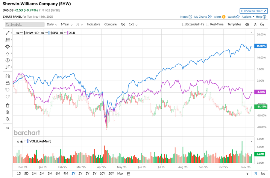 Shares of this coating giant have underperformed the broader market over the past year. SHW has declined 11.4% over this time frame, while the broader S&P 500 Index ($SPX) has rallied nearly 14.1%. In 2025, SHW stock is up 1.5%, compared to the SPX’s 16.2% rise on a YTD basis.
