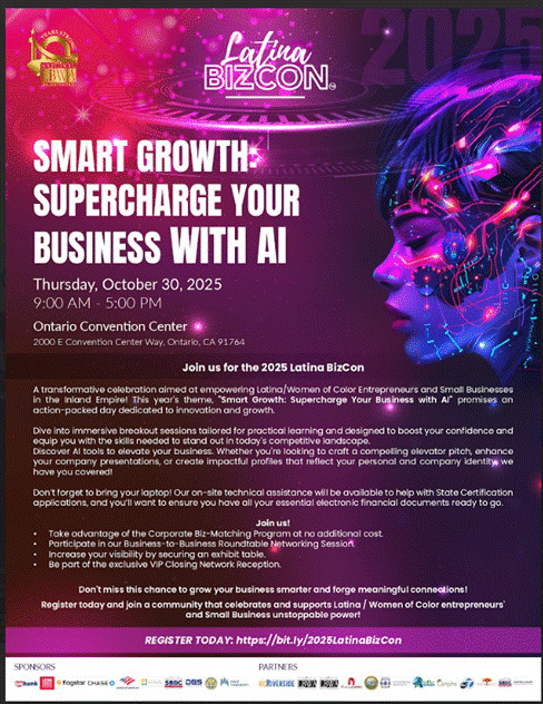 Ontario, CA - The National Latina Business Women Association Inland Empire Institute (NLBWA-IE) proudly announces the 2025 Latina BizCon™, a dynamic conference aimed at equipping Latina and Women of Color entrepreneurs with the tools and strategies needed to thrive in an evolving business landscape. The event will take place on October 30, 2025, at the Ontario Convention Center, situated on Convention Center Way in Ontario, California.