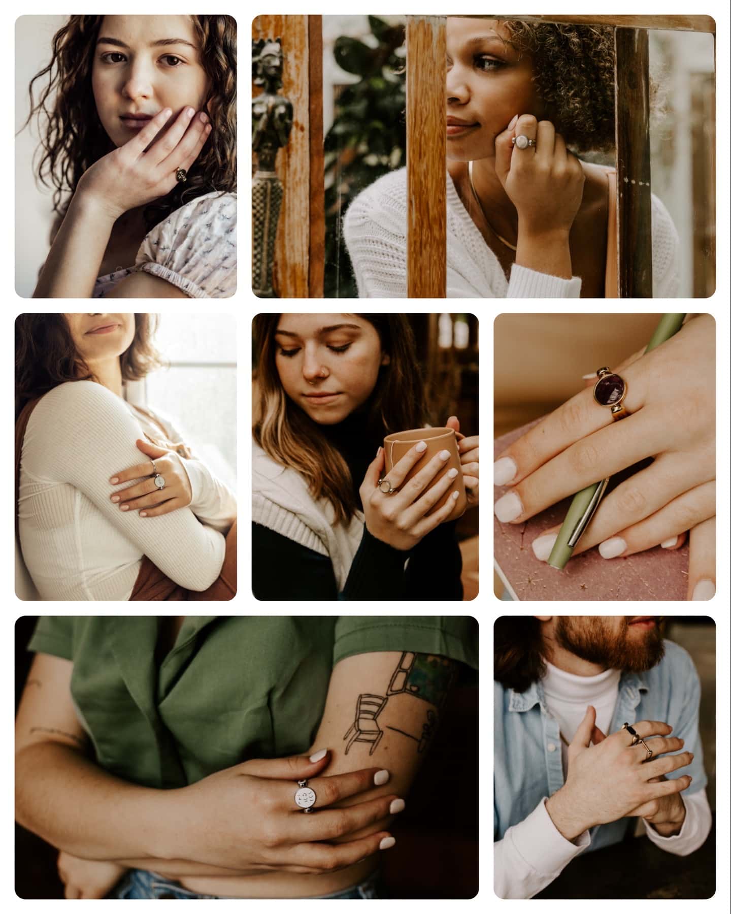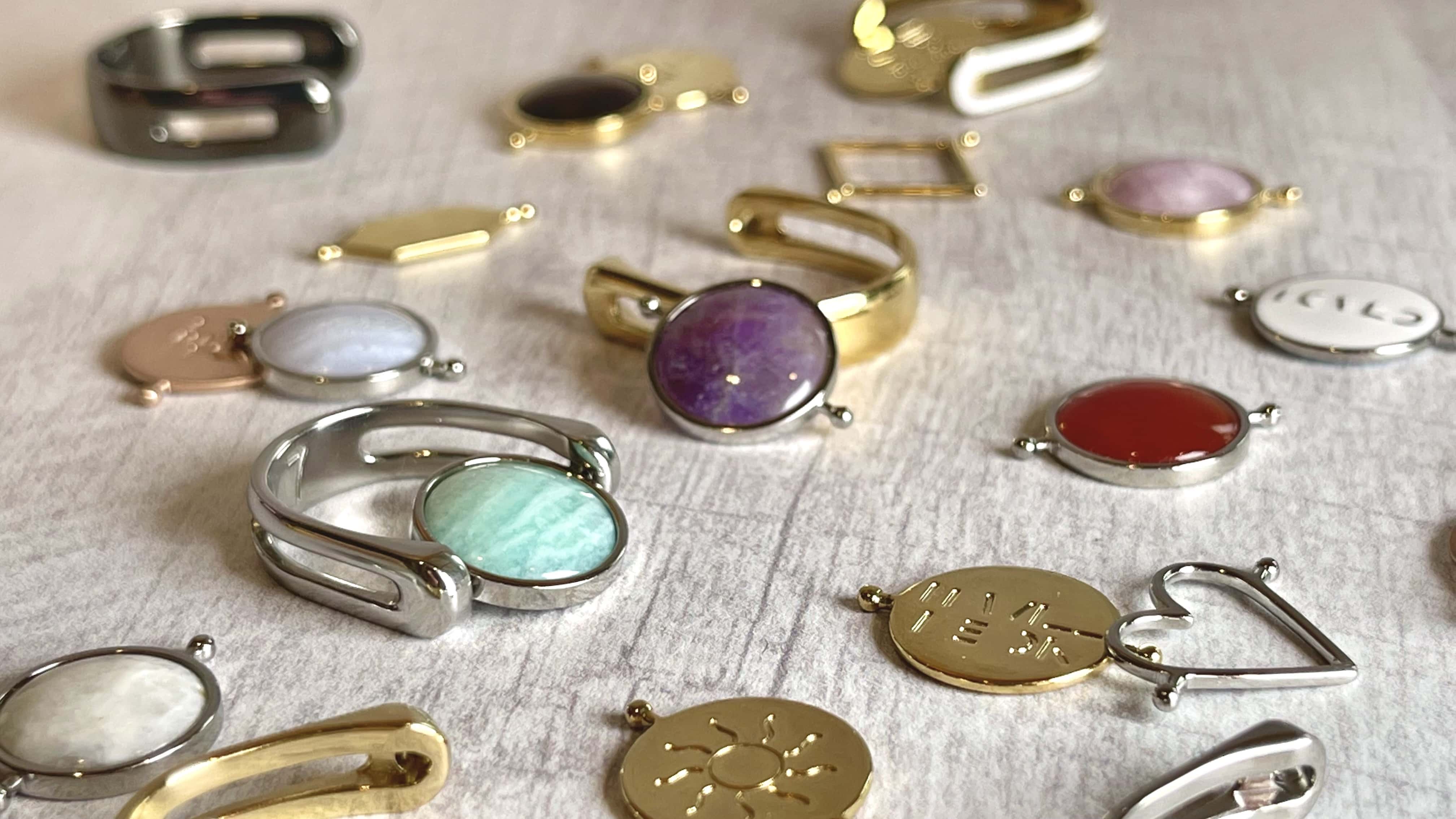 3 hands stacked, each wearing a CONQUERing crystal fidget ring