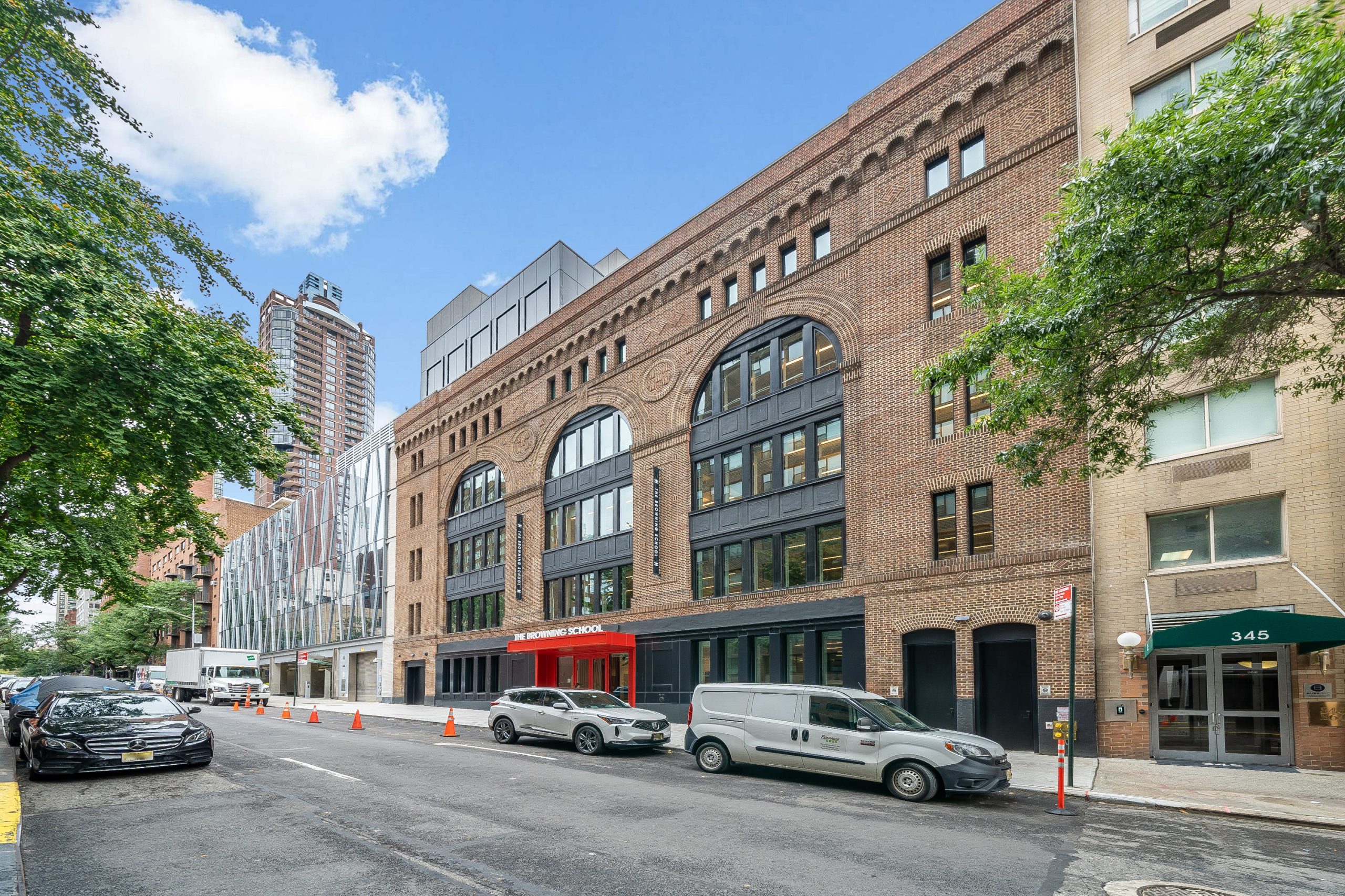 Key highlights of the project include a dramatic double-height community common area, a fully modernized 64th Street façade, expansive windows that flood interior spaces with natural light, and a sustainable green roof that reinforces The Browning School's forward-looking values.