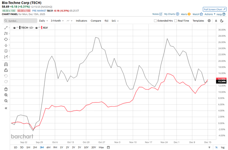 Shares of the Minneapolis, Minnesota-based company have decreased nearly 26% from its 52-week high of $79.28. TECH stock has increased 13.7% over the past three months, slightly lagging behind the Health Care Select Sector SPDR Fund’s (XLV) 14% gain over the same time frame.