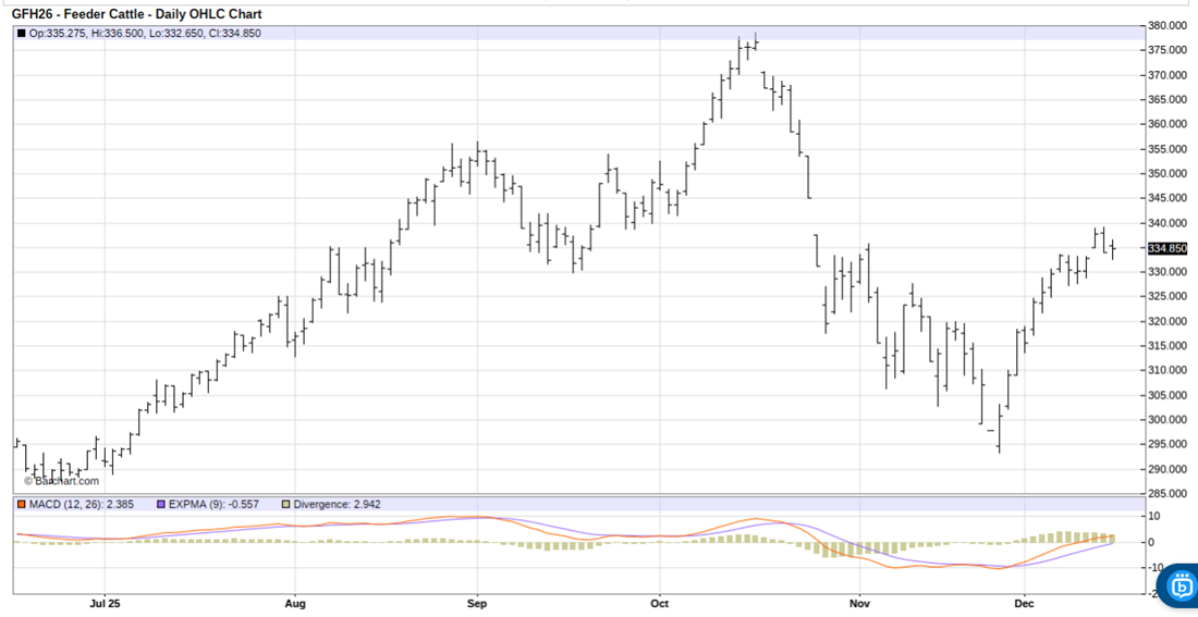 March feeder cattle (GFH26) futures present a buying opportunity on more price strength.
