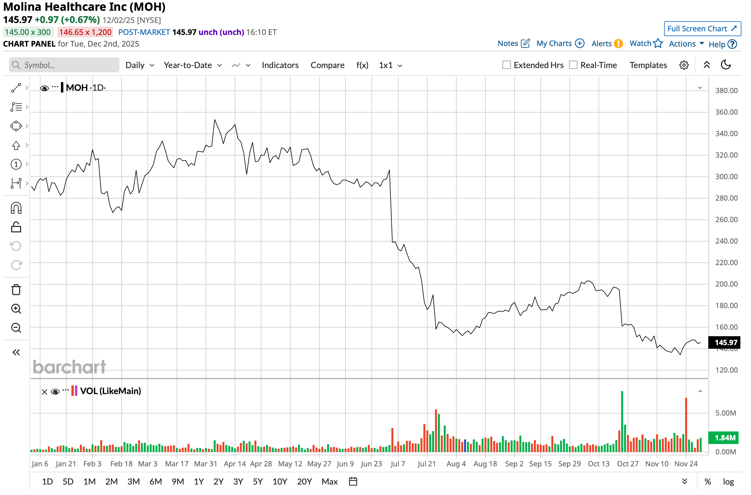 However, Molina stock has suffered a significant pullback of almost 50% in 2025. Its market cap currently stands at $7.9 billion.