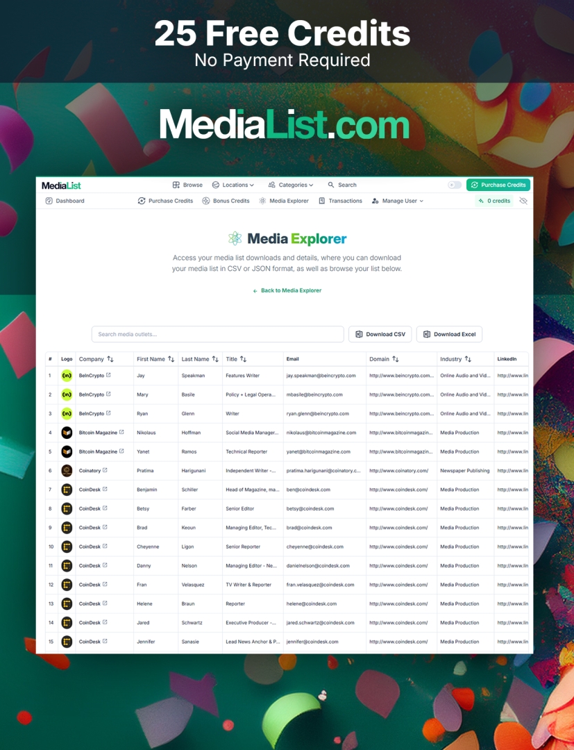 The best way to understand the quality of a database is to use it. MediaList eliminates the friction of a "locked" demo by providing 25 free credits the moment you register. This allows you to perform a real-world audit of the data—checking for accuracy, depth, and relevance within your actual industry—before you ever have to discuss a subscription.
