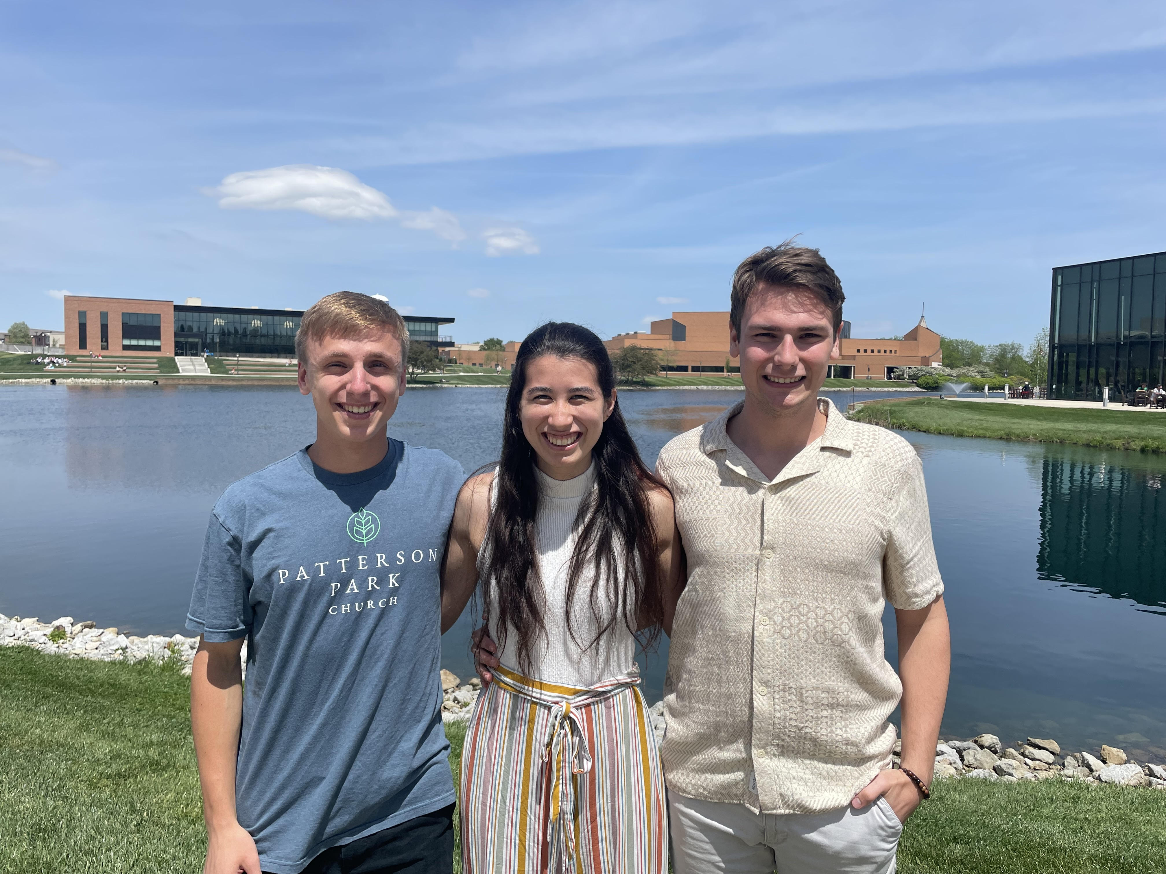 Josiah Zurick, project leader (Middlefield, Ohio), Thaddeus Krueger (Beavercreek, Ohio) and Kimiye Wenger (Lititz, Pennsylvania) submitted a proposal to Wright Patterson Air Force Base to create customizable helmets for Air Force pilots.