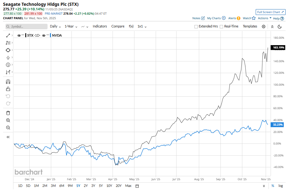 One such example is Seagate Technology (STX). The data storage company has emerged as one of the top-performing stocks in the S&P 500 Index ($SPX) this year. Over the past six months, Seagate’s shares have skyrocketed 200.1%, and they’re up 226.5% year-to-date. This rally reflects surging demand for Seagate’s mass-capacity storage solutions, expanding investments in AI infrastructure, and the company’s improved balance sheet and profitability.