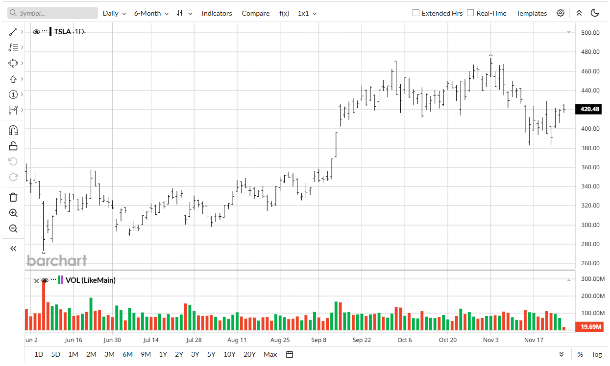 Tesla (TSLA) fell by nearly 50% earlier this year, giving up post-election gains amid a market-wide decline and a spat between President Donald Trump and CEO Elon Musk. It has been making a comeback in the past few months and is up by 3.5% year to date, although it remains nearly 12% off its YTD highs and is underperforming the S&P 500 Index ($SPX)