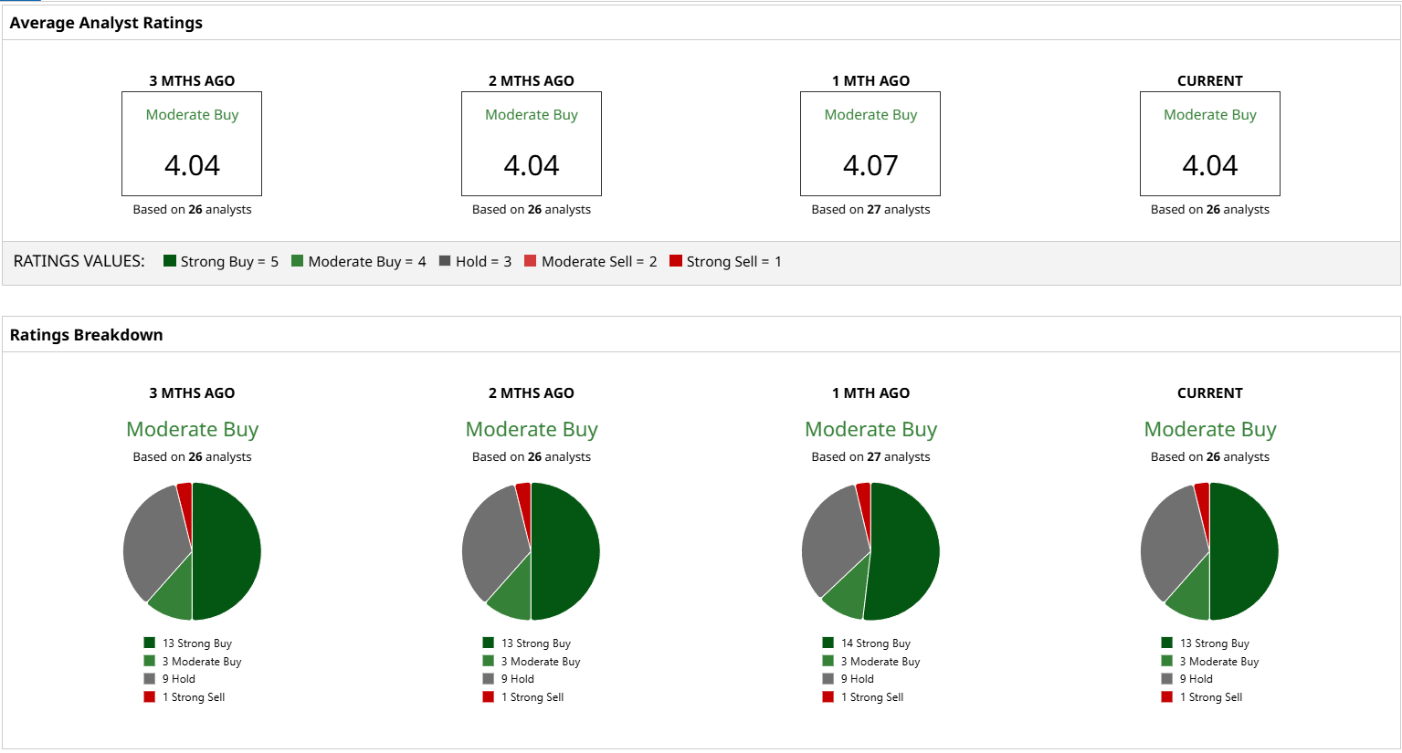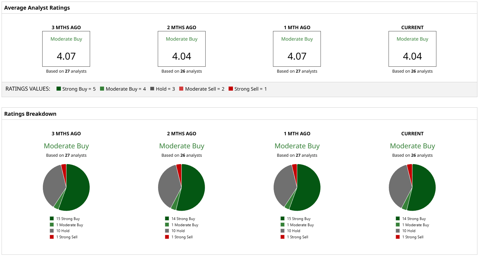• Number of Analysts: 20 or more. The more analysts covering the stock, the more reliable the ratings it has.