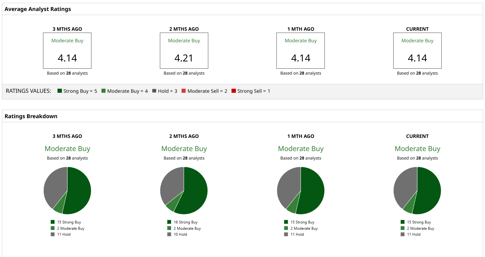 That said, a consensus average of 28 analysts covering the stock points to a Moderate Buy rating with a score of 4.14 out of 5, stable over the past three months. The high price target for the stock is $289 per share, reflecting roughly 25% upside potential for new investors at these levels.